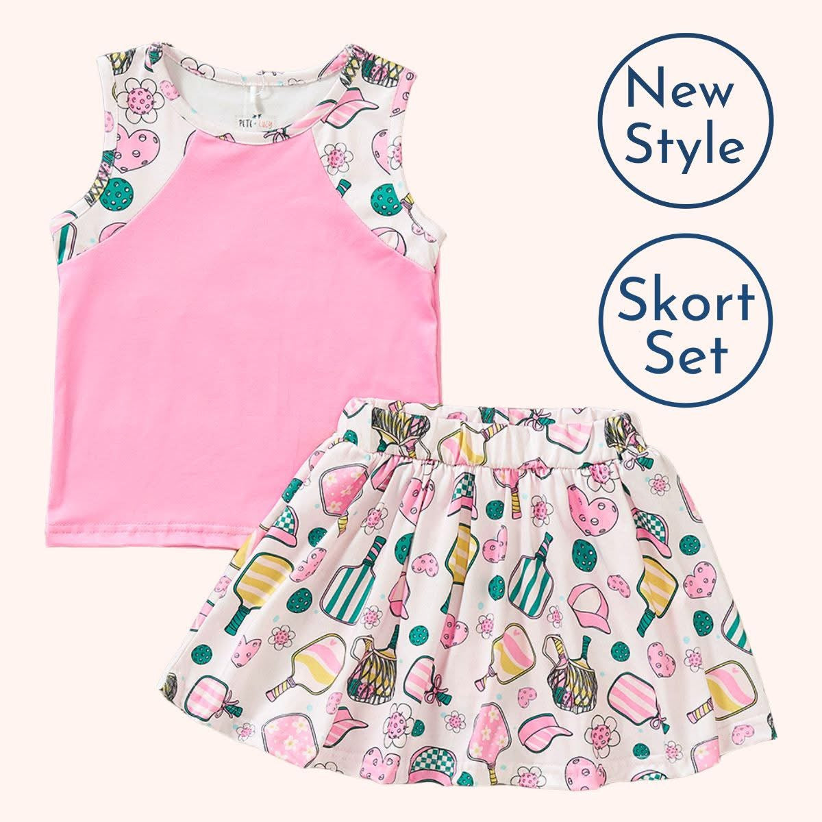 Playtime just got sweeter! Skort Set from Pete+Lucy features a playful pickleball-themed print with rackets, caps, and hearts in soft pastel colors. Designed with a comfortable fit, it’s perfect for active little ones. Made with Pete+Lucy’s signature fabric that’s stain-resistant, ultra-soft on delicate skin, and built to last.